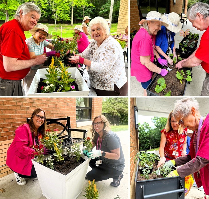 Blooming Together: St. John Community’s Garden Party Posted on June 21, 2024July 9, 2024 The Residence at St. John recently held a fun and colorful “garden party” to beautify the St. John Community campus. The event brought together residents, staff, and members of the Lutheran SeniorLife Visiting Nurses Association (VNA) for a day of planting flowers and vegetables while showcasing The Residence’s strong resident bonds and creating a wonderful memory for everyone. A special thanks goes to Gumto’s Greenhouse for their generous donation of over 200 flowers and various vegetables. Residents enjoyed planting an array of vibrant flowers such as Zinnias, Verbenas, Buddy Whites, Yellow Marigolds, and Celosias, as well as vegetables such as broccoli, cucumbers, peppers, and tomatoes, promising a bountiful harvest in the coming months. “The garden party was a wonderful example of our incredible community here at St. John. The campus looks absolutely beautiful, thanks to the hard work and dedication of everyone involved,” said Ashley Treadway, St. John Community Regional Marketing Manager, expressing her appreciation. “It was wonderful to see residents and staff bonding over such a meaningful project, and it provided a valuable opportunity for residents to engage in a fulfilling social activity.” With the flowers now beautifully planted and the vegetables beginning to grow, they serve as a lasting reminder of a day well spent and the strong community spirit at St. John.
