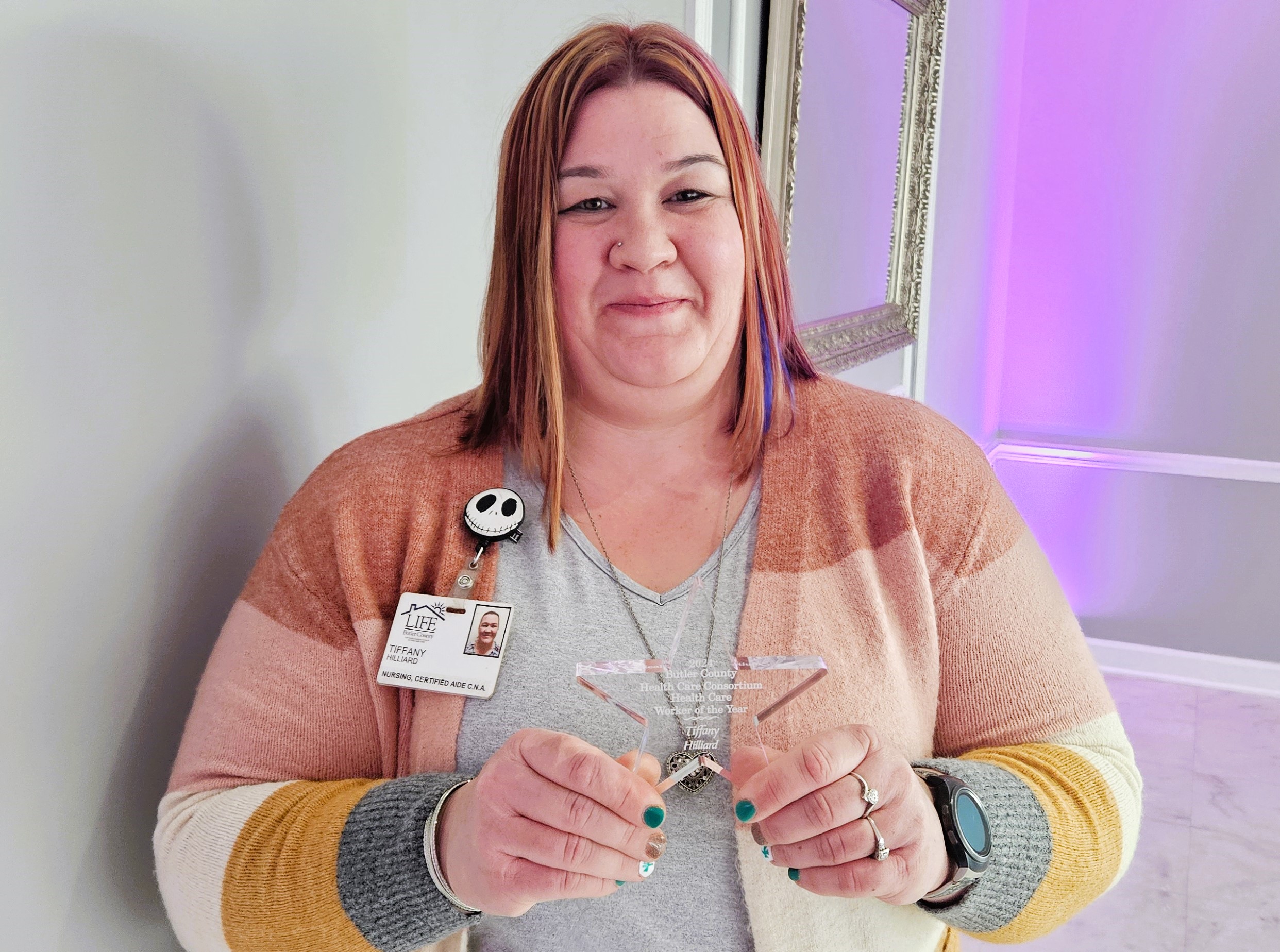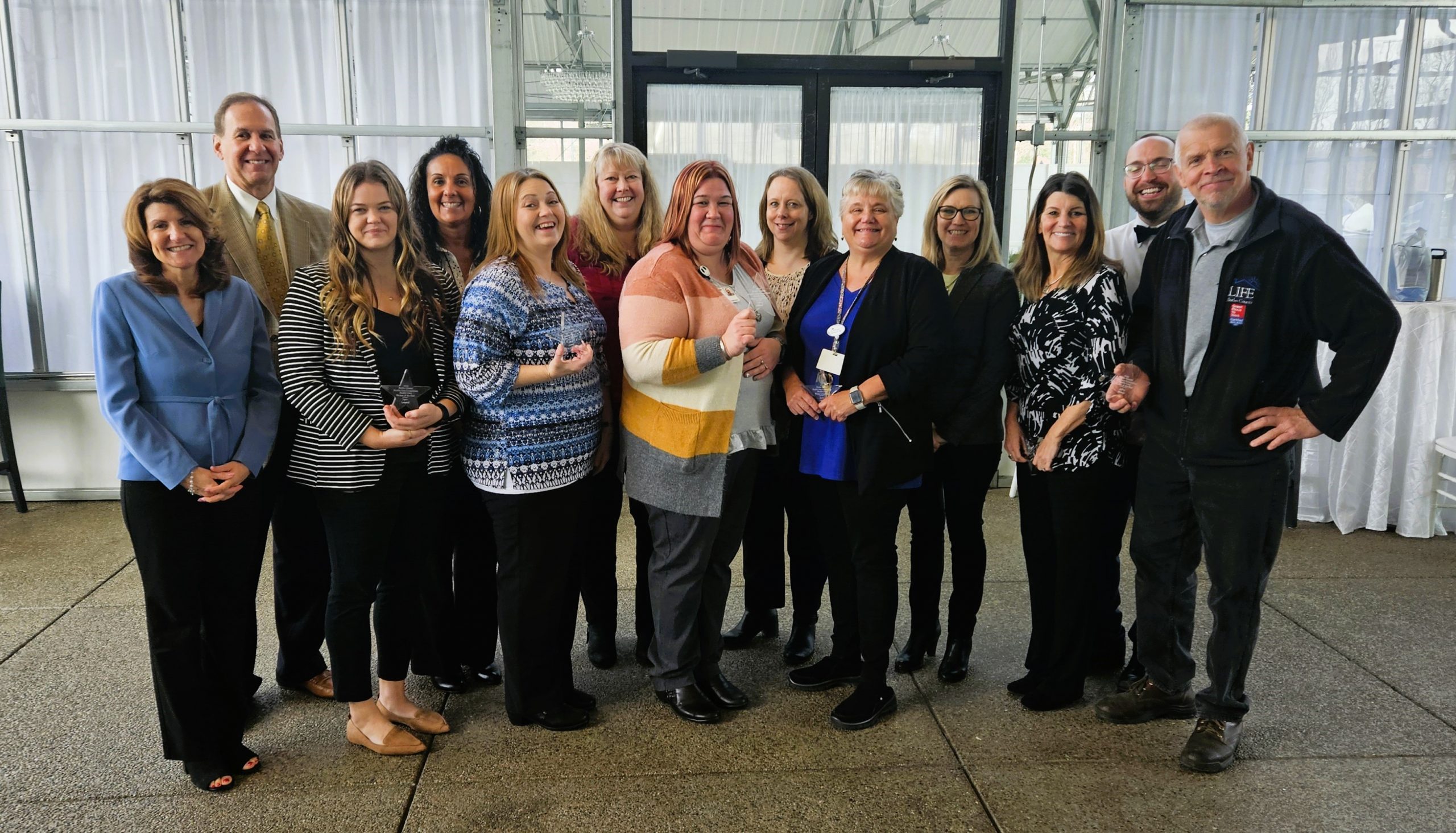 Butler Health Care Consortium Pays Tribute to VNA and LIFE Butler County Health Care Professionals, Staff & Volunteers Posted on March 14, 2024July 9, 2024 The Butler County Health Care Consortium recently honored selected health care workers and volunteers of the VNA of Western Pennsylvania and LIFE Butler County during the Consortium’s Health Care Workers of the Year annual event at The Atrium in Prospect. Lutheran SeniorLife CEO and President, David Fenoglietto, delivered the keynote address, expressing gratitude for the invaluable work of the healthcare workers while highlighting the profound impact these individuals have on the lives of others. “You don’t have to have a title to be a leader,” said Fenoglietto. “In healthcare, you have the opportunity to make a difference in a person’s life every day.” The honorees were nominated by their peers and supervisors for their remarkable service and commitment to the Butler County community. VNA and LIFE Butler County Honorees include: Lillian and David Griffith, VNA Volunteers Lillian and Dave are a dynamic wife/husband hospice volunteer duo. They are both caring, giving, kind, thoughtful and pleasant—all of which are special qualities in a volunteer. Lillian and Dave have a great understanding of the special needs of the hospice patients and families and go out of their way to meet these needs. Lil and Dave also volunteer for many hospice events and office tasks, exemplifying the true spirit of a volunteer. VNA Hospice is blessed to have them! Cristen Krebs, Nurse Practitioner for VNA Hospice Cristen is a VNA Hospice Nurse Practitioner with more than 30 years of hospice experience. She excels in navigating difficult conversations with patients and their families, guiding them through end-of-life decisions with empathy and understanding. Cristen collaborates with patients and families to establish goals that enhance their quality of life during their remaining time. As a valued resource and educator for staff, her serene and reassuring presence brings comfort to challenging moments, making them more manageable for all involved. Lori Scott, Administrative Coordinator for VNA Lori serves as the Administrative Coordinator, at Lutheran SeniorLife VNA. Often described as a “Jack of All Trades,” Lori thrives on challenges and approaches them with enthusiasm, taking problems head-on until they’re resolved. She ensures that the in-home care staff at VNA have all the essential equipment needed for independent fieldwork. Patient, kind, and empathetic, Lori diligently works to ensure everyone’s day proceeds seamlessly. Her willingness to assist with any issue makes her a dependable resource. Megan Wilson, RN, VNA Megan exemplifies dedication and compassion in her role as a nurse. Her kindness and caring nature shine through as she attends to her patients’ needs. Megan actively listens to ensure each individual’s safety at home and diligently works to fulfill those requirements. A fantastic team player, she readily assists her coworkers whenever necessary. Megan’s patients hold her in high regard, appreciating her warm demeanor and attentive care. She brings a refreshing energy to the team at Lutheran SeniorLife VNA, serving as a valuable asset to the organization. Jeff Arienzo, Transportation Team, LIFE Butler County Leading by example, Jeff serves as an outstanding ambassador for LIFE Butler County, demonstrating dedication and compassion in his role. Jeff prioritizes the safety of all LIFE Butler County participants during their transportation while going above and beyond his job title. Jeff always assist participants with wheelchairs, walkers, and rollators. LIFE Butler and its participants are blessed to have him. Taylor Campbell, Registered Dietitian, LIFE Butler County Taylor maintains high standards for Meal Services and Nutritional Care for participants of LIFE Butler County. She efficiently coordinates the production and distribution of thousands of meals each month. Taylor’s dedication and compassion shine through as she advocates for the Lutheran SeniorLife mission, aiming to bring an Abundant Life to all program participants. Desiree Cronkhite, Recreational Therapist, LIFE Butler County Desiree works with the LIFE Butler County participants to ensure they can live their lives to the fullest. With expertise in person-centered care, she attentively listens to their needs and assists in tailoring recreational programming to ensure that each individual can experience an Abundant life. Luella Crowe, LPN, Community Care Coordinator, LIFE Butler County Luella does an exceptional job in helping LIFE Butler County participants live self-sufficiently in their apartments at Under Our Wing. She closely with the staff to provide individualized, person-centered care. Her dedication fosters a warm, respectful, and compassionate atmosphere for participants, while also cultivating a positive work environment for colleagues. A tireless advocate, Luella consistently champions those in her care, leaving a meaningful impact through her unwavering positivity and compassionate approach, day in and day out. Toni DeHart, Nursing Team Manager, LIFE Butler County Toni holds the role of Nursing Team Manager, demonstrating exceptional support for her staff while actively engaging in their training and retention efforts. Ready to step in for home care staff when necessary, she consistently goes above and beyond for both participants and colleagues. Collaborating extensively with the interdisciplinary team, Toni prioritizes the safety and independence of every participant, striving to maintain their home-based care for as long as possible. Her contributions make her an invaluable asset to LIFE Butler County. Tiffany Hilliard, CNA, LIFE Butler County Tiffany advocates for person-centered care and individual independence of participants. She consistently exceeds expectations to ensure that participants’ desires and requirements are fulfi