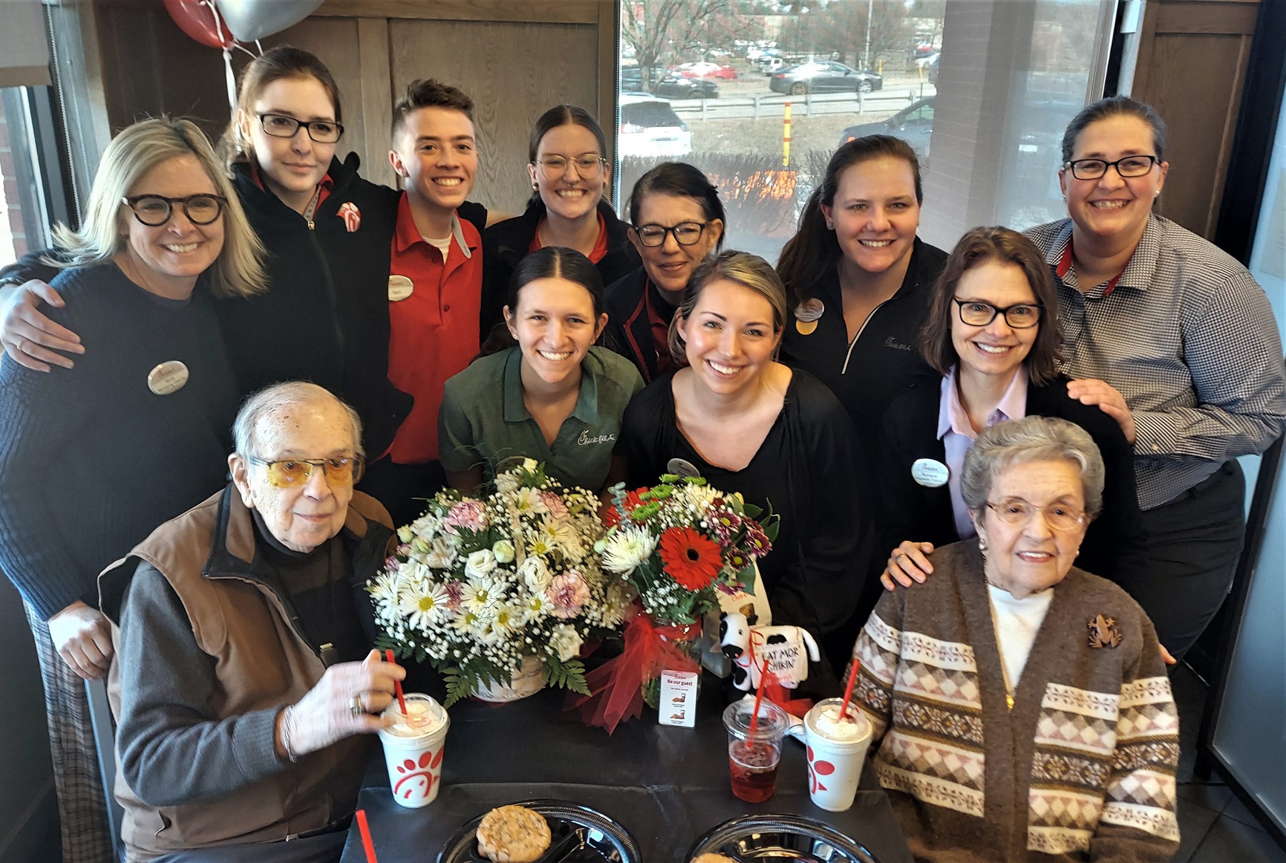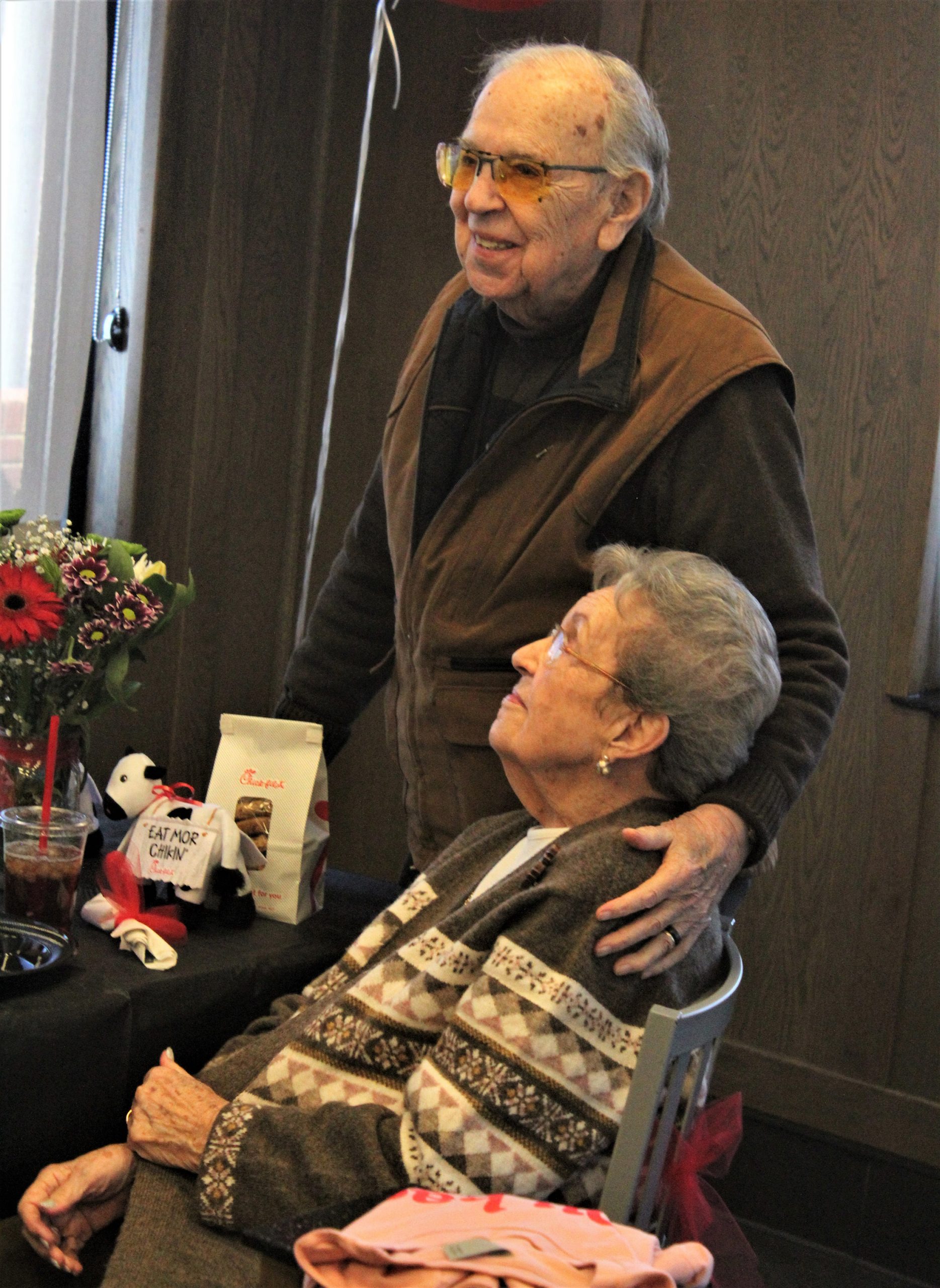 Chick-fil-A Surprises Overbrook Pointe Couple with Date Posted on March 27, 2023June 23, 2023 By Austin Uram, Eagle Staff Writer CRANBERRY TWP — When Fred, 93, and Betty Abdon, 92, left their Lutheran SeniorLife apartment Monday for their weekly fried chicken date, they said they were surprised to find a limousine waiting for them. “I just couldn’t believe it,” Betty said. “This has been a dream.” Fred and Betty have been married since June 25, 1950. Every week, they head to the Cranberry Township Chick-fil-A for a drive-through date where they eat and talk together in the parking lot. When the location caught wind of their weekly tradition, management invited them to a VIP lunch date to celebrate their commitment and love. And, according to Noriene Schmit, the location’s hospitality director, it was all a surprise. “I told them they were just going to have a day of surprises — they were very surprised,” Schmit said with a laugh. “They thought I was picking them up in my car.” They arrived at the restaurant to a reserved section of tables complete with bouquets, gift bags and matching shirts that read: ‘You had me at Waffle Fries.’ “And then we also had the idea of getting a barbershop quartet to come in and serenade them, which was super fun,” Schmit said. Four members of the Cranberry Men’s Chorus filled the little restaurant with songs ranging from “My Special Angel” to “This Little Light of Mine.” The celebration was a far cry from their typical, quiet date in their parked car. “We came in a limousine,” Betty exclaimed, “and I wanted to go through the drive-through. They told me I couldn’t do that.” Cait Rickard, an employee who has been serving the couple for the last five years, said that one part of their date remained the same though: their order. “Two Chick-fil-A sandwiches, they both get two sweet teas and they both get two cookies,” Rickard said. “Every time.” After getting to know the couple over the last few years, Rickard said what she admired most about them was their commitment. “I wish to find a love like that,” she said. “To be married that long to your best friend, I feel like it’s an amazing feat. Especially for so long, because there’s so much bickering and fighting in relationships. I just feel like with their communication and having that set date to stay with each other — I just think that’s amazing.” A legacy of love That commitment, according to the Abdons, began more than 70 years ago at a department store in Kentucky. “We met, it was Christmas time, and he was at a department store and I was there for Christmas,” Betty said. “He was sort of like a floor walker, brings you to everything, and I told the ladies, ‘Oh, he’s good looking.’ They told me, ‘You have to get a date with him.’” Fred, she said, did not have a date for an upcoming dance at his college, so he asked her. “And we just jelled after that,” Fred said. “Of course we saw each other almost daily, we were working at a department store. I don’t want to say it was love at first sight, but it wasn’t too many months after.” What helped them “jell,” Fred said, was that their relationship had always been founded on “give and take.” “I knew that I married him for life — I didn’t marry him to divorce him,” Betty said. “I know that God put us together for a reason, and he’s kept us together for a reason.” Part of that reason, according to Fred, was their close circle of family and friends who shared their faith and principles. These friends and family joined Monday to celebrate “just how blessed” they are, according to their daughter, Becky Gooch. “They’ve been married 72 years, and they’re still able to get out and come to Chick-fil-A for lunch every week,” Gooch said. “I am very thankful.” Fred and Becky’s grandson, Jeff Gooch, and his wife Trina emphasized the value of spending “intentional time” in a relationship like the 72-year-old couple does. “They still make that allowance for each other, to spend that time to do something that’s just for them,” Jeff said. “To go out and enjoy a date and do something that’s about celebrating the relationship.” Trina said she did not grow up with grandparents of her own, and that the Abdons’ love has left a lasting impression on her and those around them. “When I married into the family, it was pretty cool to see the legacy they’re leaving their family,” she said. The Abdons hope to continue to spread their legacy of love for years to come. “We just hope that God will give us some more years together and keep us healthy and strong for each other,” Betty said. “We feel so blessed we have had this many years together, and we want to continue to be together.”