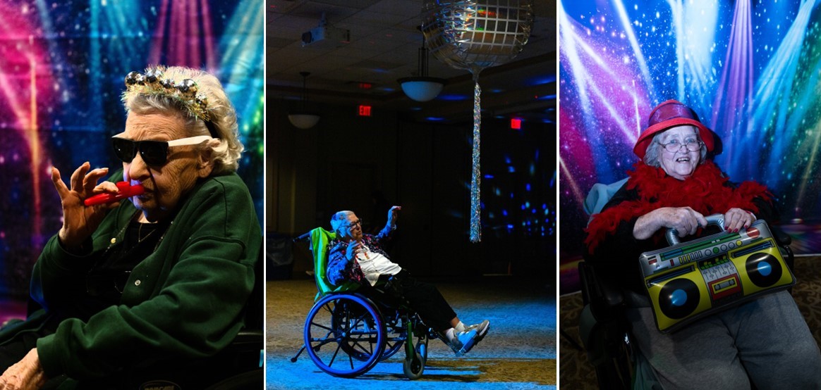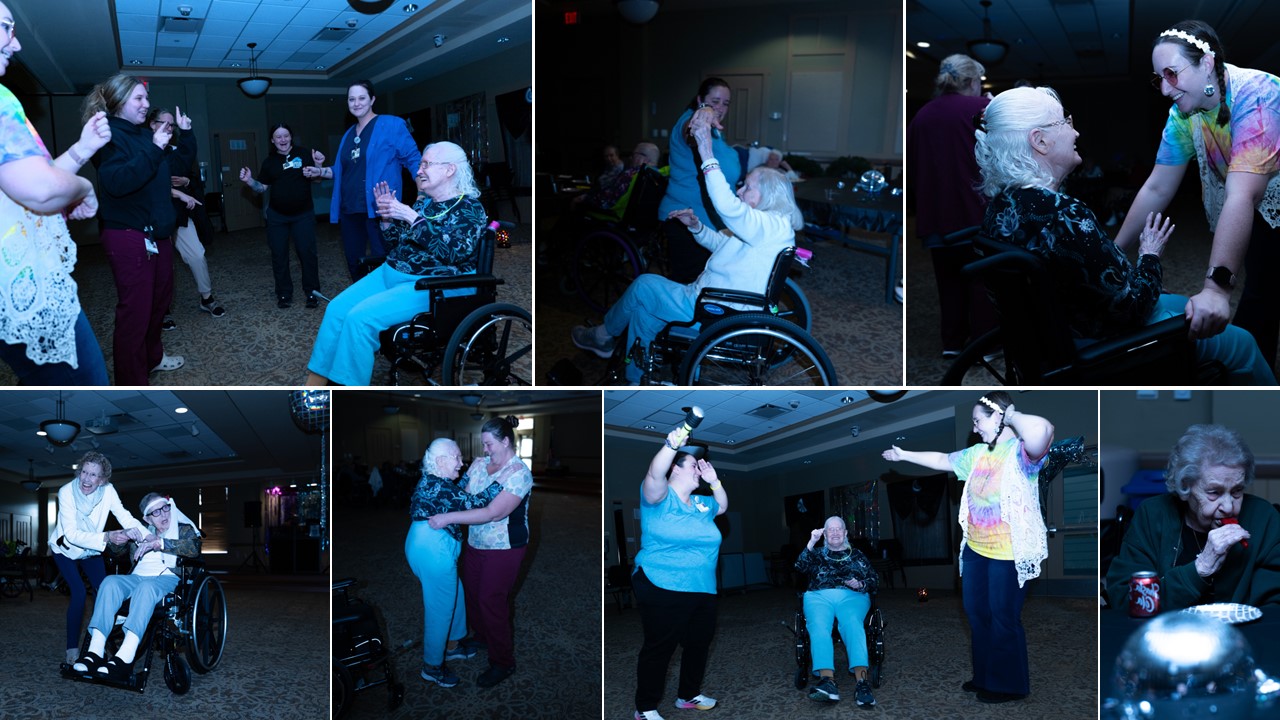 Disco Revival: Passavant Community Residents Move to the Beat at 70’s Party Posted on November 25, 2025 When the lights dimmed, and the upbeat music began to play, it was hard to tell if you were at a nightclub or somehow still in the Scholl Conference Center at Passavant Community. Welcome to the Disco Nightclub Party. Residents of the nursing households arrived to find a space transformed by soft lights, bright, flashy colors, and a dance floor. A DJ spun the ’70s classics, an era known for its vibrant disco music and iconic hits. Residents sipped mocktail punch and enjoyed snacks and when they weren’t taking a break for refreshment, they made their way onto the dance floor to the rhythmic beats of disco, funk, and soul. It didn’t matter who needed a walker or a wheelchair, or who moved more slowly than they used to. Everyone danced. Some standing. Some seated. But everyone was swaying to the rhythm of a song they hadn’t forgotten. What made it special wasn’t the theme or the lights (though both were amazing setups thanks to the hardworking Passavant staff). It was the feeling in the room. Age may change the way someone moves, but it doesn’t change the part of us that wants to move. The part that still remembers the thrill of a favorite song or the courage it takes to get onto the floor and just let loose. And that’s the heart of Passavant Community. Not just caring for people, but celebrating them and letting them live their best Abundant Life.