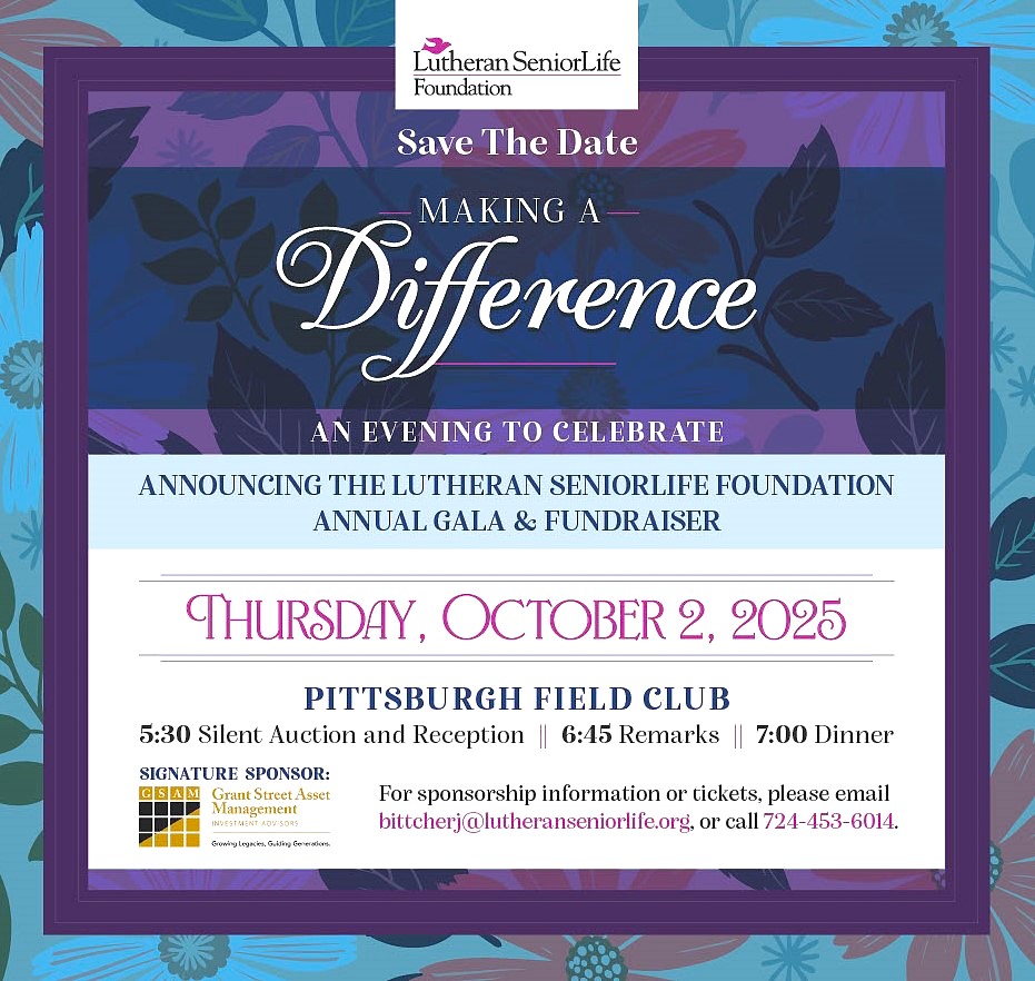 For additional information or questions about the Annual Event, Call (724) 453 – 6014 or email bittcherj@lutheranseniorlife.org