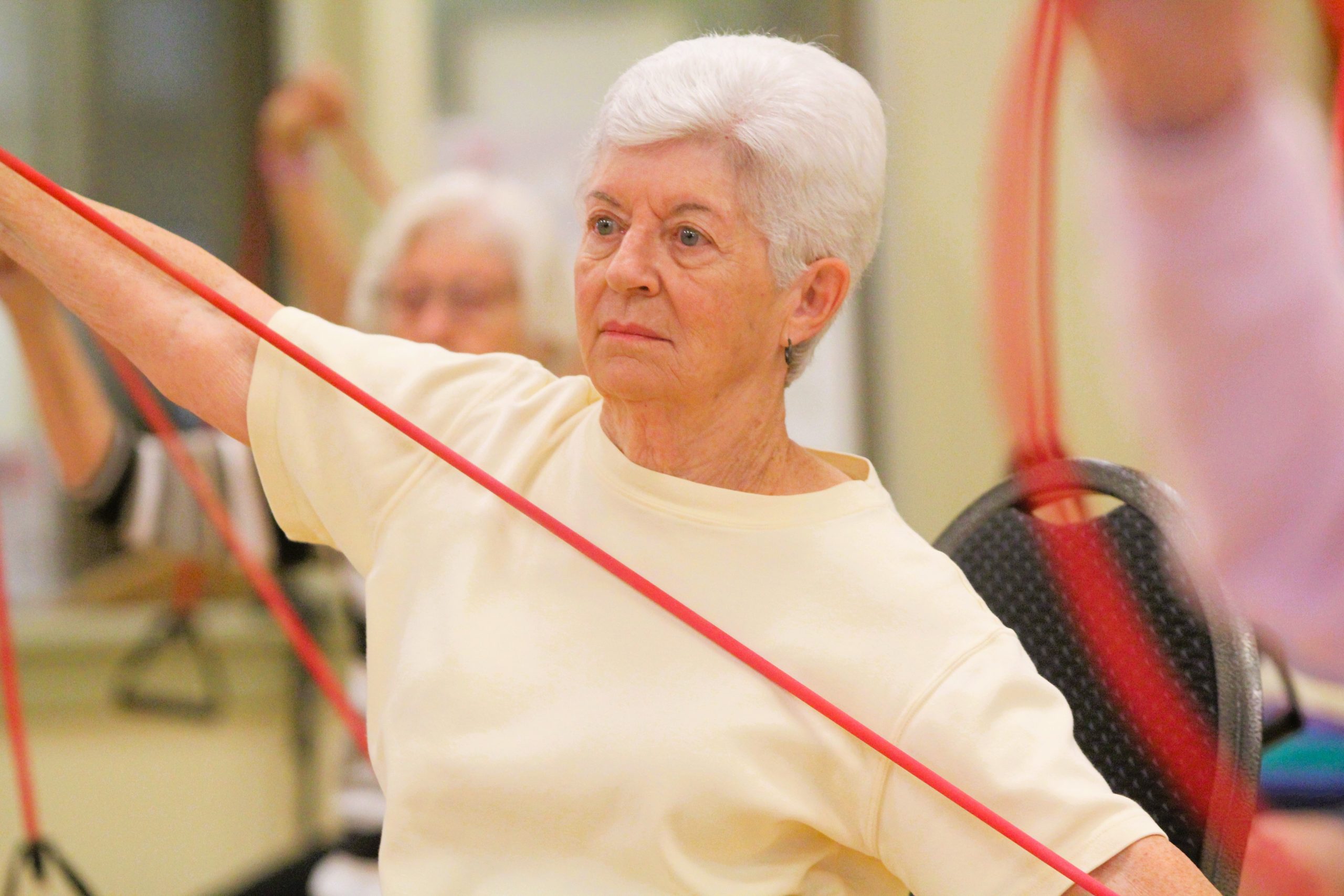 JoAnn Clarkson, 87, a resident of the Lutheran SeniorLife Passavant Community, participates in one of the many ASPIRE Wellness classes offered on campus.