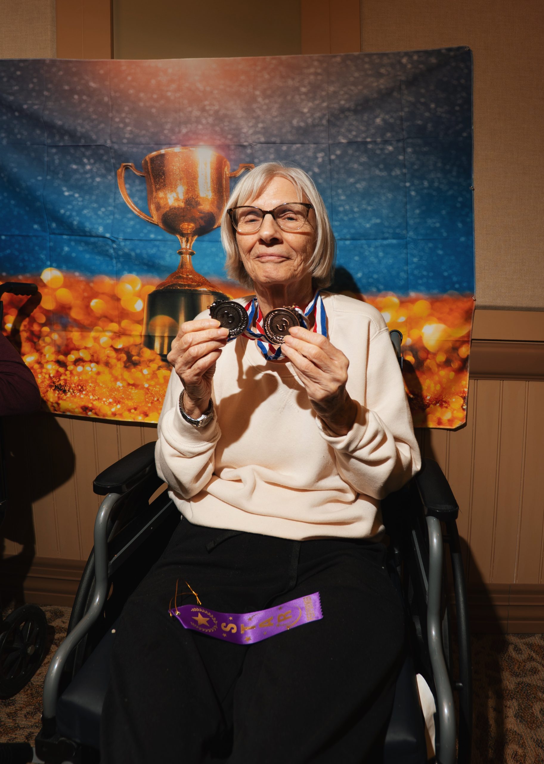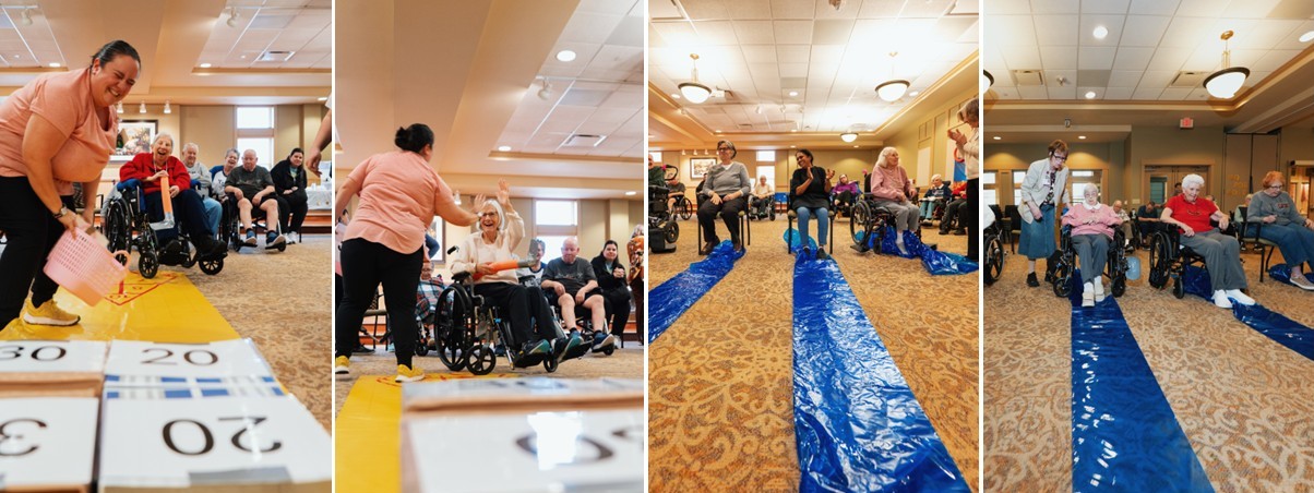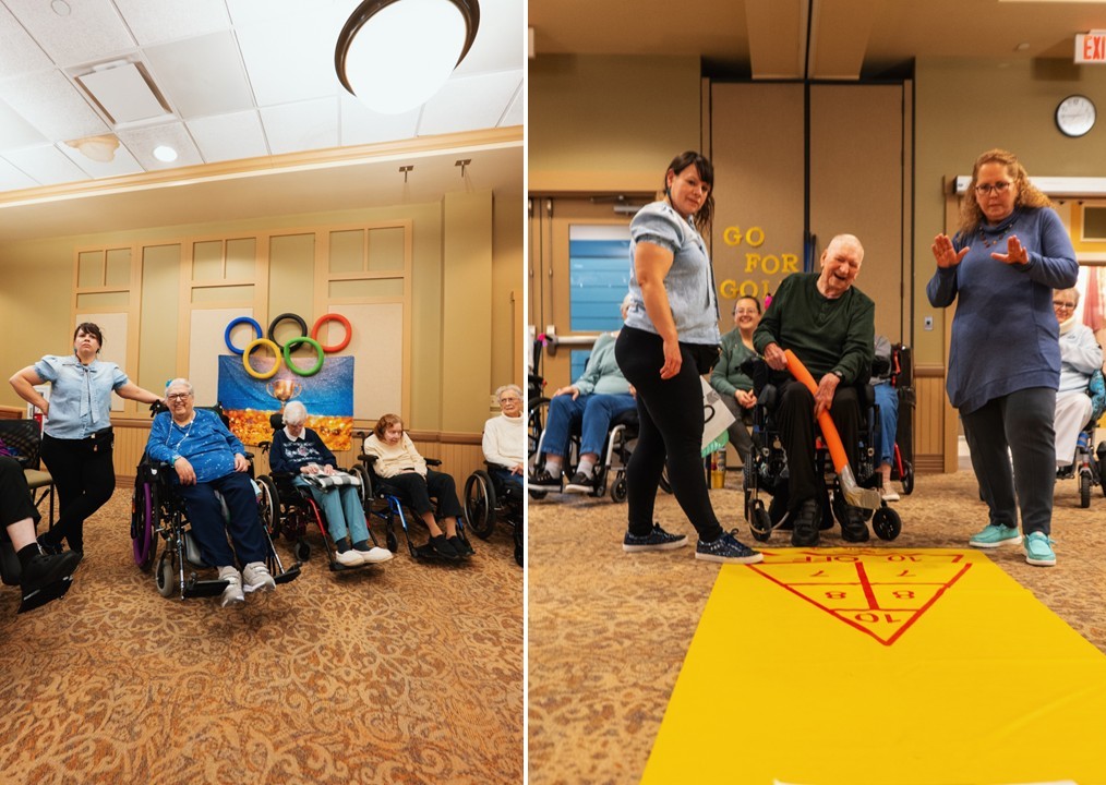 Passavant Community Residents Go for Gold at the Winter Olympics Posted on March 5, 2026March 5, 2026 You could hear it before you could see it. The cheers started halfway down the hallway at Passavant Community, echoing off the walls like a crowd in a stadium. Laughter. Applause. The unmistakable sound of people rooting for one another. Follow the noise and you would not find professional athletes or television cameras. You would find something better. Residents, families, volunteers, and caregivers gathered together for the Passavant Winter Olympics. Inside the “arena”, the walls carried a message that said it all – “Go for Gold”. The Passavant team even recreated the Olympic rings out of pool noodles and hung them proudly on the wall. This event was a true team effort. The Passavant Nursing Community Life team joined forces with the Community Household team and staff across the community to make the day possible. Together, they created something special for the residents they serve every day. The games were simple, creative, and filled with competitive spirit. There was shuffleboard curling that required a steady hand and a little strategy. A hockey shooting challenge where residents aimed carefully to land the ball in point zones. A speed skating race across a stretch of blue cellophane that shimmered like ice as residents moved as quickly as they could to the finish. And a snowball toss where the farther the throw, the bigger the cheer. And there were cheers. High fives after a perfect shot and moments where residents leaned forward in their chairs, watching closely as a neighbor lined up their attempt. Sarah, Passavant’s Recreational Therapy Manager, said the best part was seeing the entire community together. “It meant a lot to us to have residents and staff from across the community in one place enjoying the moment together,” she shared. “We kept the day simple and focused on resident interaction. Watching them compete and laugh together was what mattered most.” Sarah organized the event alongside Activity Associates Lyndsey, Stephanie, and April, who together helped turn an ordinary room into an Olympic venue. At the end of the games, medals were awarded to celebrate the champions of the day. First place gold. Second place silver. Third place bronze. But every resident who competed received something just as meaningful: recognition and applause. And if you happened to walk by that hallway, you did not need a sign to know something special was happening. You could hear it.