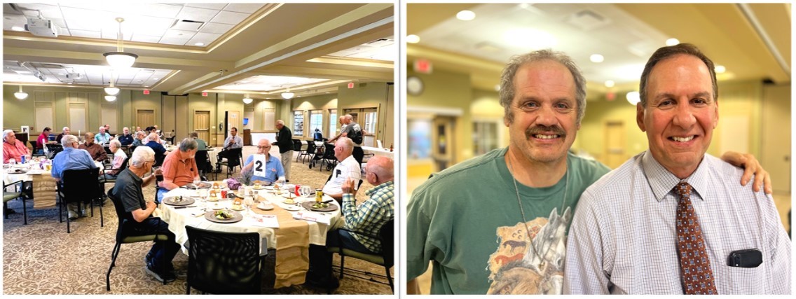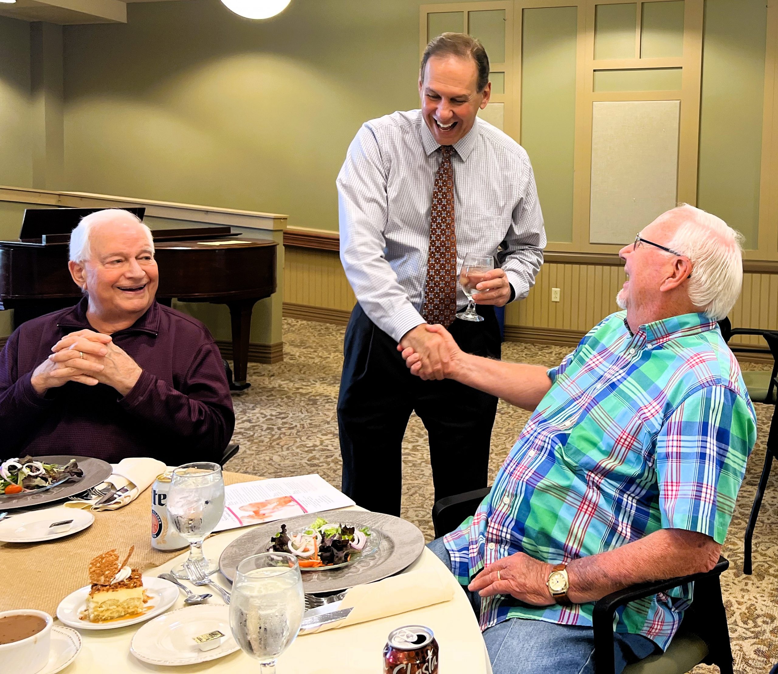 Passavant Community’s Men’s Group Hosts Insightful Evening with Lutheran SeniorLife CEO Posted on May 29, 2024July 9, 2024 The close-knit group of men at Passavant Community recently convened for their monthly gathering, ‘Men’s Night Out,’ an event that showcases their strong friendships and commitment to mutual support and learning. This month’s meeting featured a special guest: Lutheran SeniorLife President and CEO, David Fenoglietto. While the men of Passavant Community often cross paths in various settings, the ‘Men’s Night Out‘ is a truly unique occasion. It’s a time for everyone to unwind, socialize, and most importantly, continue their journey of learning and growth through engaging educational lectures. The recent gathering was particularly memorable, with Fenoglietto’s captivating discussion on Lutheran SeniorLife’s extensive services and innovative initiatives. Fenoglietto addressed the group, offering an insightful presentation on the various living communities and services provided by Lutheran SeniorLife. His speech emphasized the organization’s commitment to forward-thinking and adapting to future needs, ensuring that Lutheran SeniorLife continues to meet the evolving needs of its residents. “We were very honored to have David here for our ‘Men’s Night Out’ meeting,“ said resident Al Stoker. “David did a fantastic job explaining a lot about Lutheran SeniorLife and what is all involved, really highlighting its vast scope and the amount of care they provide. It was really enlightening to learn about the scale and impact of their work.” The evening featured a delicious meal with a menu that included a fresh salad, prime rib, twice-baked potatoes, and a colorful vegetable medley, all capped off with a delightful almond cake for dessert. The members relished the chance to dine together, share stories, and discuss the insights provided by Fenoglietto. “We had a great meal, a great time, and just a great night. It was a pleasure to have David; everybody enjoyed themselves,“ Stoker added.