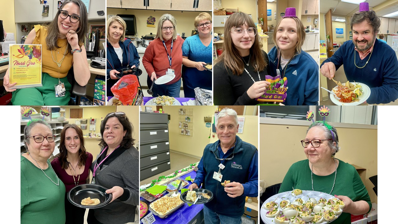 Passavant’s Pancakes and St. John’s Mardi Gras Magic Posted on February 19, 2026February 19, 2026 Purple, gold, green, and a whole lot of food.That description captured the scene at St. John Community and Passavant Community for their Mardi Gras, Shrove Tuesday, or Fat Tuesday (whatever name you prefer) celebrations. St. John Community, employees turned their office into a mini French Quarter. One table overflowed with homemade gumbo and jambalaya. Another featured chicken tenders, deviled eggs, and an array of dips. Nearby, a dessert table stole the spotlight with cookies, a bananas foster cake, and the unmistakable King Cake, complete with the tiny baby waiting to pass along a little luck. Many of the meals and desserts were homemade by various St. John team members. Coworkers gathered not just to eat, but to connect, relax, and celebrate together. Over at Passavant Community, residents followed the smell of syrup straight to their annual Shrove Tuesday Pancake Breakfast. Hot pancakes, melting butter, sausage, and every topping you could imagine were ready and waiting. Residents built their perfect plates, and second and third helpings were strongly encouraged. Many took the time to pose and smile beneath the colorful Mardi Gras balloon banner, which quickly became everyone’s favorite photo spot. On the calendar, it may have read Tuesday, but every year, it is a day worth circling at Lutheran SeniorLife.
