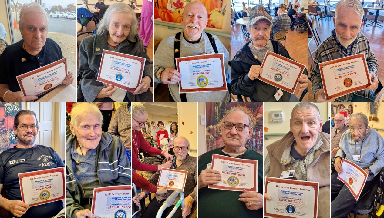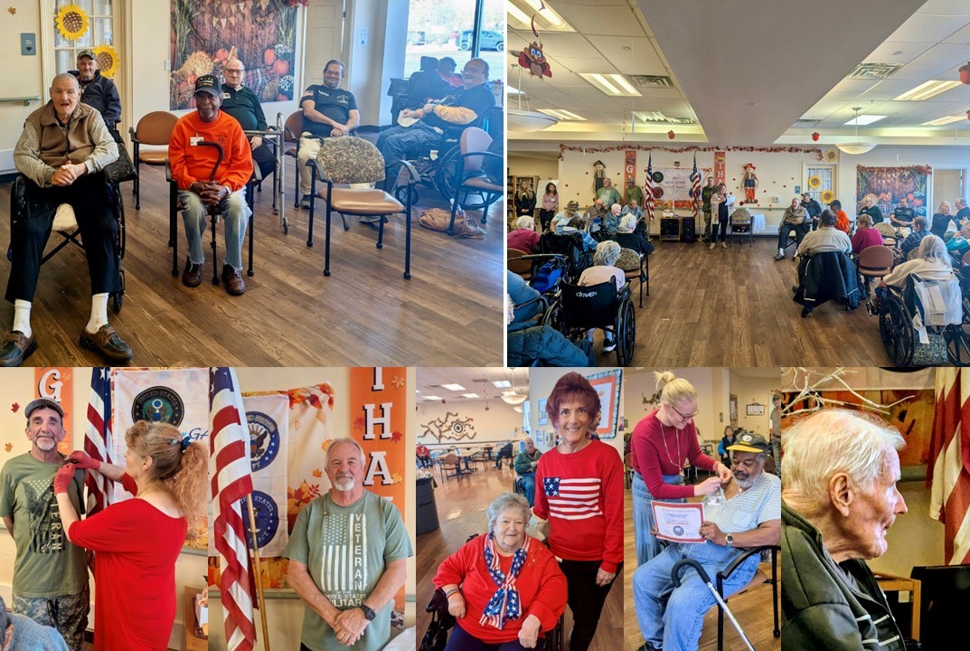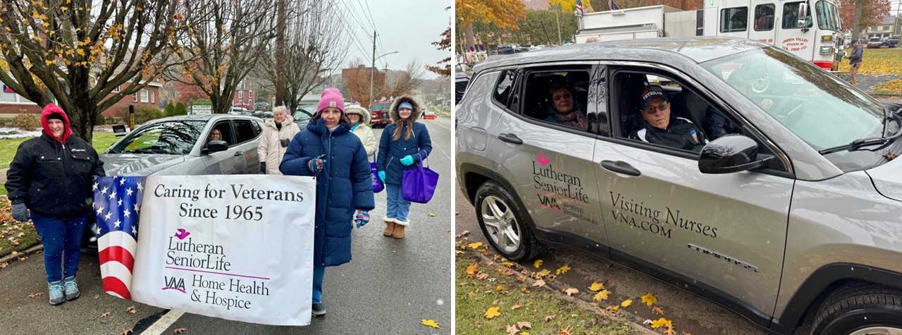 Saluting Our Heroes: Veterans Day at Lutheran SeniorLife Posted on November 26, 2025November 26, 2025 Lutheran SeniorLife thanks each of you who has worn the uniform of the United States of America, including the veterans who are part of our family as employees, residents, and participants across our communities and programs. Your courage, your willingness to serve, and the sacrifices you made in defense of our nation’s freedom are deeply respected and profoundly appreciated. The lives we live today — the opportunities we have and the freedoms we cherish — exist because of your devotion and strength. In communities throughout Lutheran SeniorLife, Veterans Day was observed with the depth and dignity that our heroes deserve. Our communities celebrated the day by honoring the extraordinary men and women whose service has shaped our nation and enriched our organization. LIFE Beaver County When Two Words Said It All: LIFE Beaver County Pays Tribute to Veterans The room at LIFE Beaver County was filled with pride and emotion. No words were needed to understand why everyone had gathered. Veterans, staff, and families came together for a ceremony to honor those who have served our Country. The morning began with quiet dignity. Two staff members who had once worn the uniform stepped forward as the color guard, presenting the Nation’s colors with solemn respect. Poems were read, a prayer was offered, and the Missing Man Table was displayed, which stands as a tribute to those who served but never returned home. The tone of the morning shifted when Veterans were invited to share their stories. One participant approached the microphone, ready to speak of leaving home young, following in the footsteps of relatives who served, and carrying the weight of those who never returned. But as they opened their mouth to speak, the memories rushed in. So too, did the emotion. They lowered their head, steadied themselves, and managed just two words: “Thank you.” It was quiet, unfinished, and yet somehow complete. Tears appeared on more than one face, and the room seemed to pause, honoring both the words and the weight behind them. Celebration followed reflection. Veterans’ names were read aloud, and certificates were presented to recognize each individual and their branch of service. Applause filled the room. Hours earlier, a staff member had brought dozens of small flags, which were handed out until every person had one. Together, the group stood to sing the Star-Spangled Banner to the music. At the height of the anthem, a fuse blew and the sound system failed. The song, however, continued. Voices lifted to fill the absence left by the speakers, and the room carried the final lines together. What could have been a disruption instead became the moment no one would forget. Before the ceremony concluded, Sheila Toomey, Recreation Therapist, stepped forward to acknowledge the Veterans who visit the center on other days and were not present. The applause that followed rose through the room with the same warmth that had carried the rest of the ceremony. Thank you to all who have served and sacrificed for this Country. Passavant Community Passavant Community, veterans rose one by one to stand before a room full of neighbors, friends, and community members— each carrying decades of service and untold stories. The Veterans Day ceremony honored men and women who served in World War II, the Korean War, and the Vietnam War, a solemn reminder of the freedoms they have safeguarded. Among those recognized was resident Joan Gill, 103 years old and the only World War II veteran in attendance. A proud member of the Women’s Auxiliary Air Force, she received a commemorative pin from Pennsylvania State Representative Stephenie Scialabba, a tribute to a lifetime of courage and dedication. Veterans from every branch of the U.S. Armed Forces were also honored, each receiving a pin to acknowledge their extraordinary service commitment. Zelienople Mayor Thomas Oliverio led the ceremonial placing of the colors, a gesture underscoring the respect owed to all who have worn the uniform. The ceremony included a reading of a heartfelt poem by Passavant resident Jim Dotson and a medley by the Passavant Singers, honoring every branch of the Armed Forces, which filled the room with music that conveyed pride, gratitude, and reflection. Lutheran SeniorLife is grateful for the opportunity to recognize these extraordinary individuals whose service safeguards the freedoms we hold dear. To all veterans—past, present, and future—thank you for your sacrifice, your courage, and your dedication. Visiting Nurses Association, Western Pa (VNA) As we honor the courage and service of all veterans, we are proud to share that Lutheran SeniorLife’s Visiting Nurses Association (VNA) was represented in the Butler Veterans Day Parade by Dave Griffith, a U.S. Navy veteran from 1964-68 and devoted Hospice Volunteer. David’s commitment to serving others captures the essence of what it means to be a veteran on Veterans Day. We extend our heartfelt gratitude to Dave, and all veterans for their service to our nation and their continued contributions to our community.